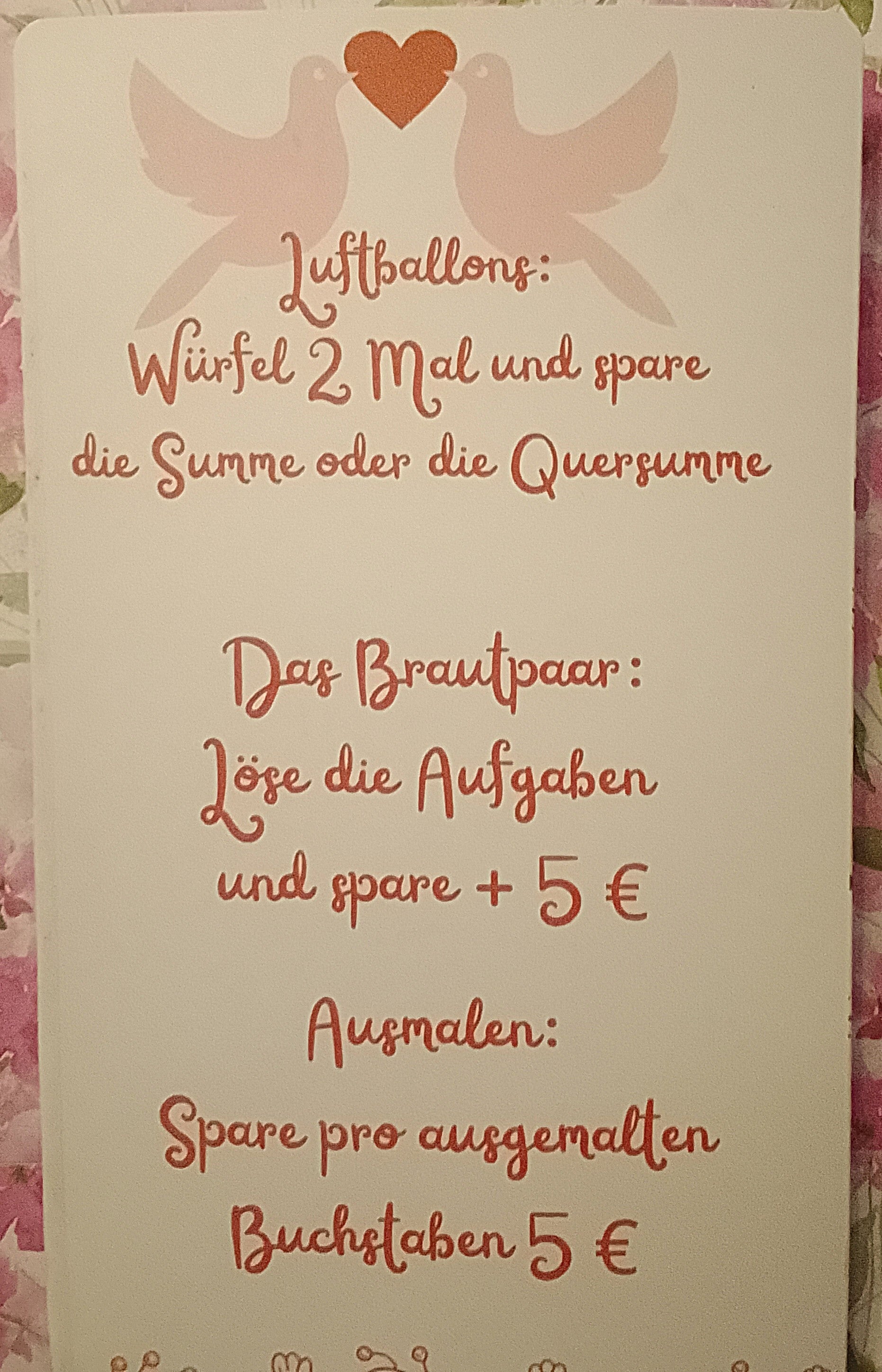 Auf drei Seiten sind verschiedene Sparspiele aufgeteilt, die Dich dabei unterstützen verträumt und mit Vorfreude kleinere Sparziele für Deine Hochzeit zu errreichen. Eine schöne Ergänzung zu den anderen Hochzeitsprodukten.