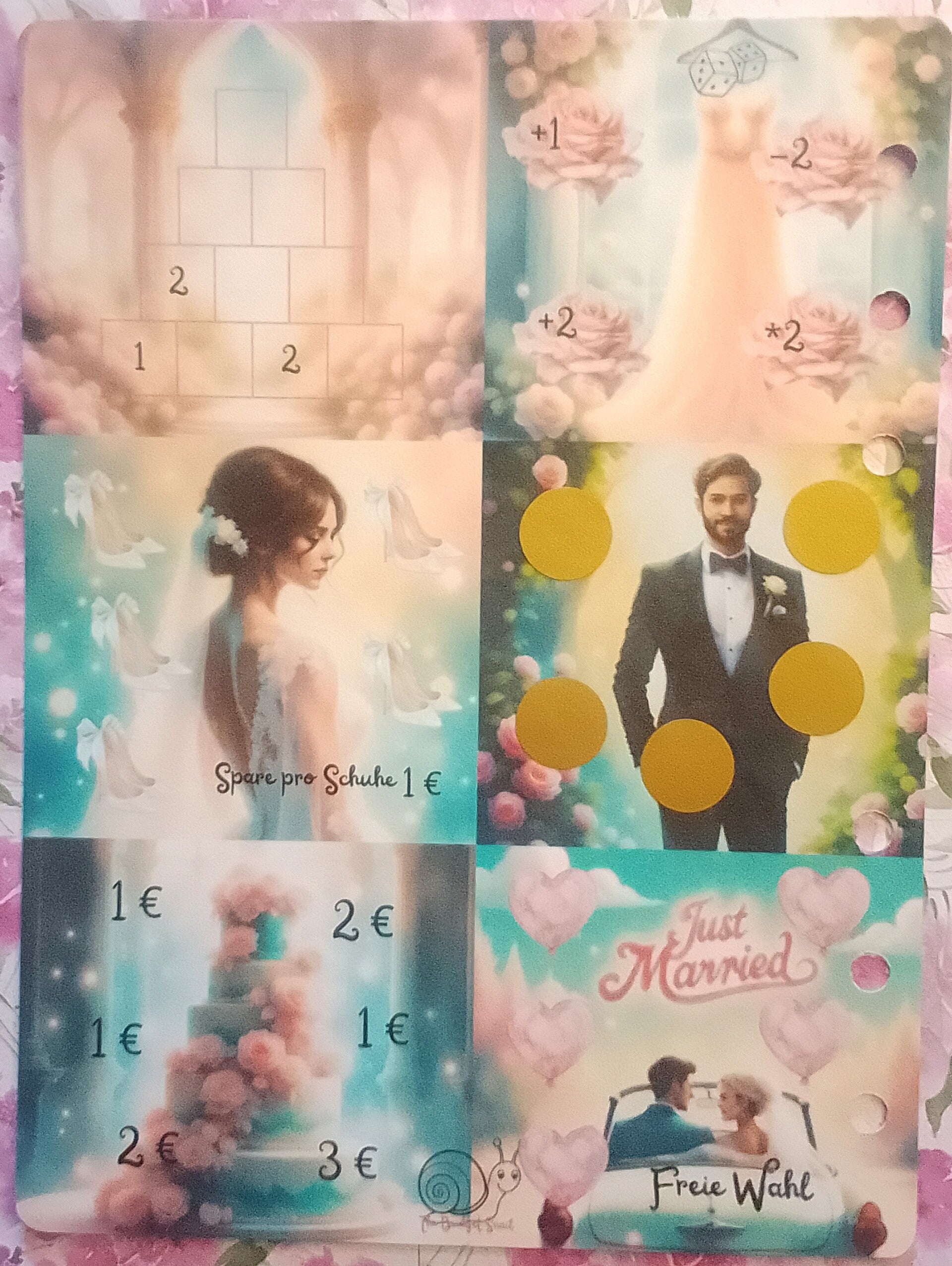 Durch die matte Folierung kannst Du die Challenge immer wieder benutzen und so Stück für Stück Deiner Traumhochzeit näher kommen.